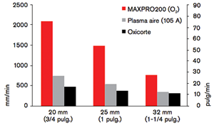 Consumibles con diseños patentados hacen posibles las mejores velocidades de corte de su tipo y una sólida perforación de producción con niveles de amperaje más bajos.