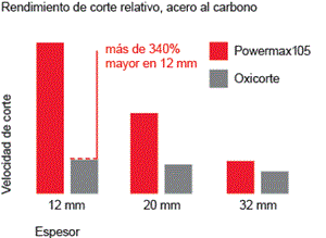 • Concluye los trabajos más rápido con velocidades de corte una y media veces mayores que las del oxicorte en acero al carbono de 12mm (1/2pulg.).